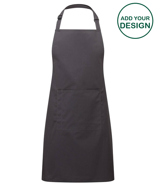 Premier - Colours bib apron with pocket - Charcoal - Add Your Design/Logo