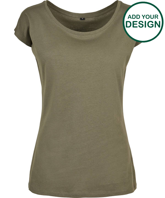 Build Your Brand Basic - Women's wide neck tee - Olive - Add Your Design/Logo