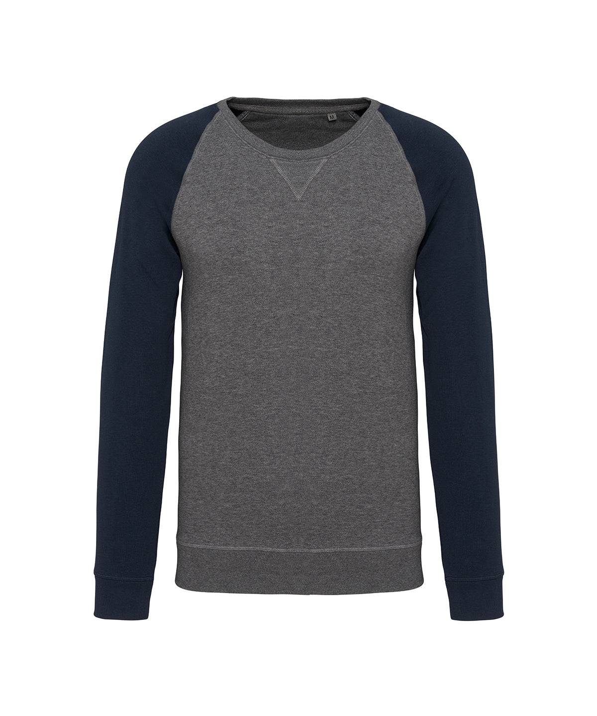 Kariban - Zweifarbiges Bio-Sweatshirt mit Rundhalsausschnitt und Raglanärmeln für Herren - Grau meliert/Marineblau - Fügen Sie Ihr Design/Logo hinzu
