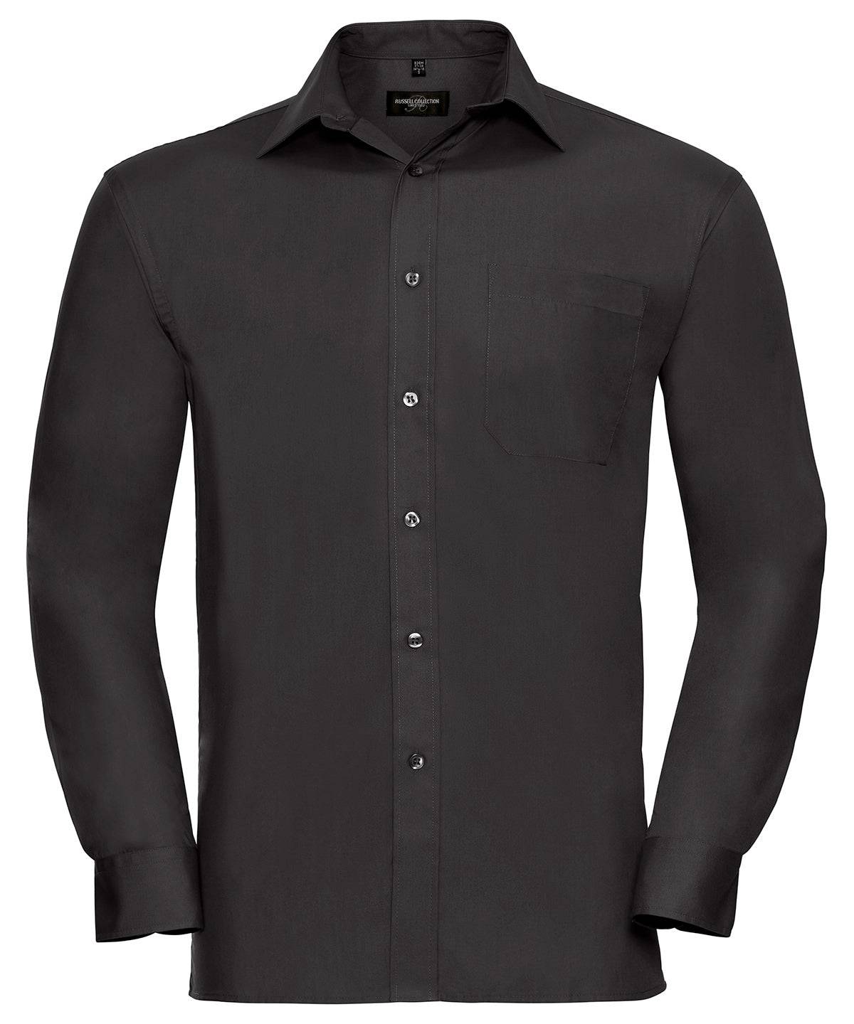 Russell Collection – Langärmliges, pflegeleichtes Popeline-Hemd aus reiner Baumwolle – Schwarz – Fügen Sie Ihr Design/Logo hinzu