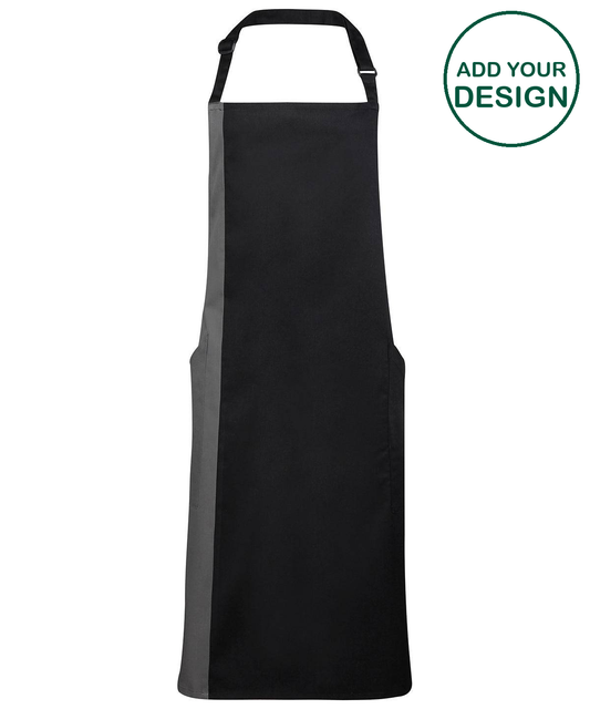 Premier - Tablier bavette contrasté - Noir/Gris foncé - Ajoutez votre design/logo