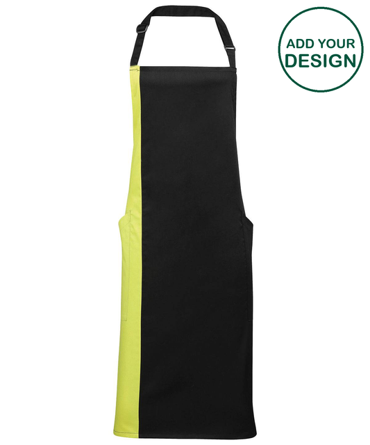 Premier - Tablier bavette contrasté - Noir/Vert citron - Ajoutez votre design/logo