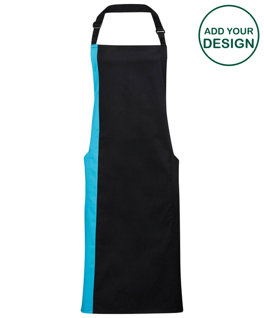 Premier - Tablier bavette contrasté - Noir/Turquoise - Ajoutez votre design/logo