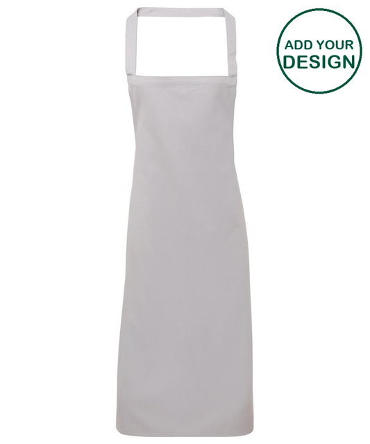 Tablier personnalisé - Premier - Tablier bavette 100 % coton biologique - Gris argenté - Ajoutez votre design/logo