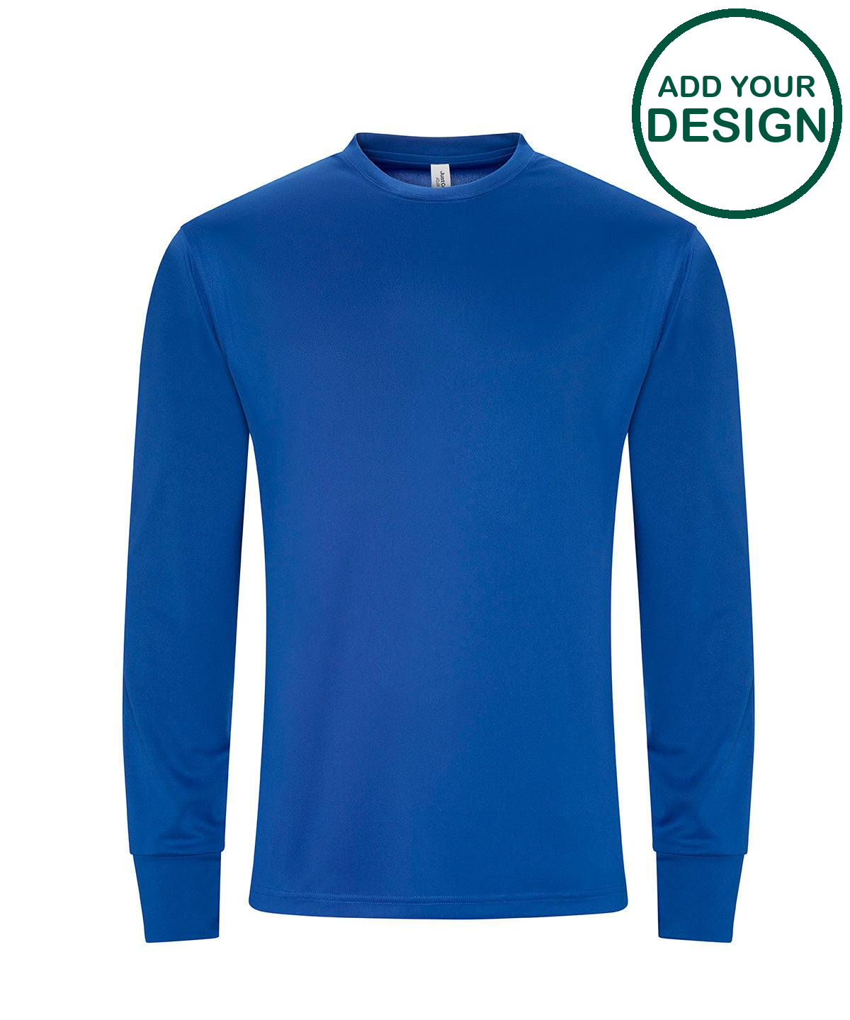 AWDis Just Cool - T-shirt de sport à manches longues - Bleu roi - Ajoutez votre design/logo