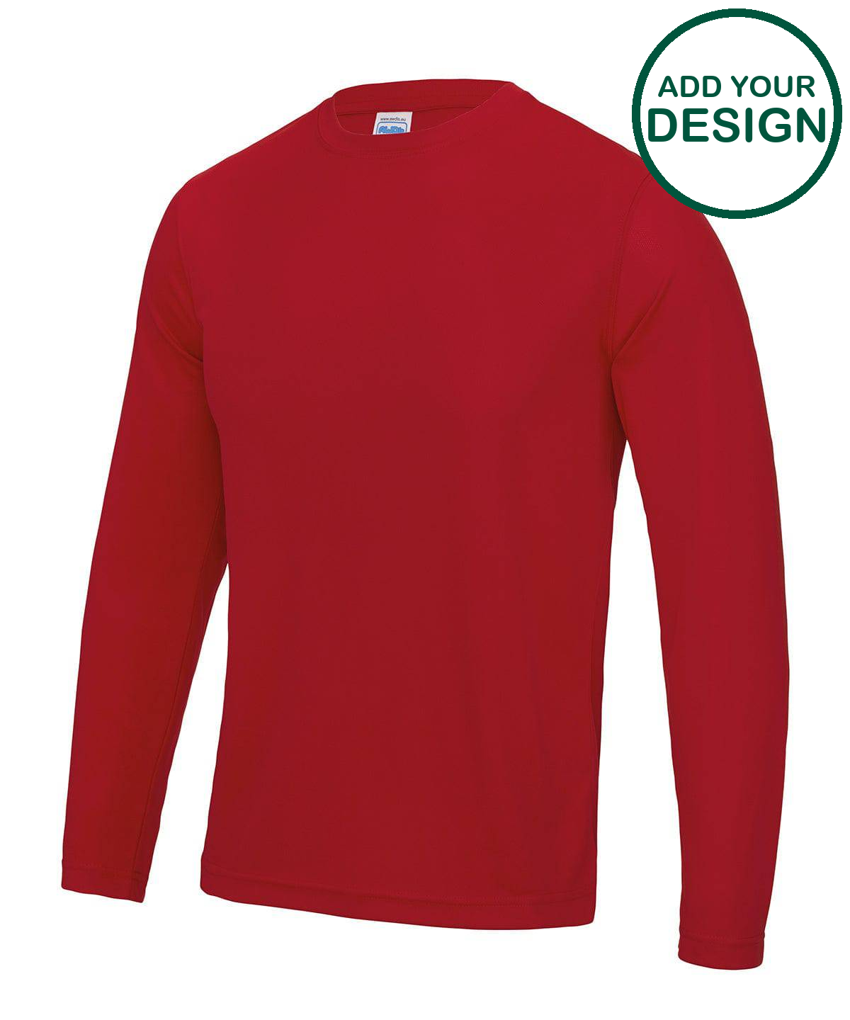 AWDis Just Cool - T-shirt cool à manches longues - Rouge feu - Ajoutez votre design/logo