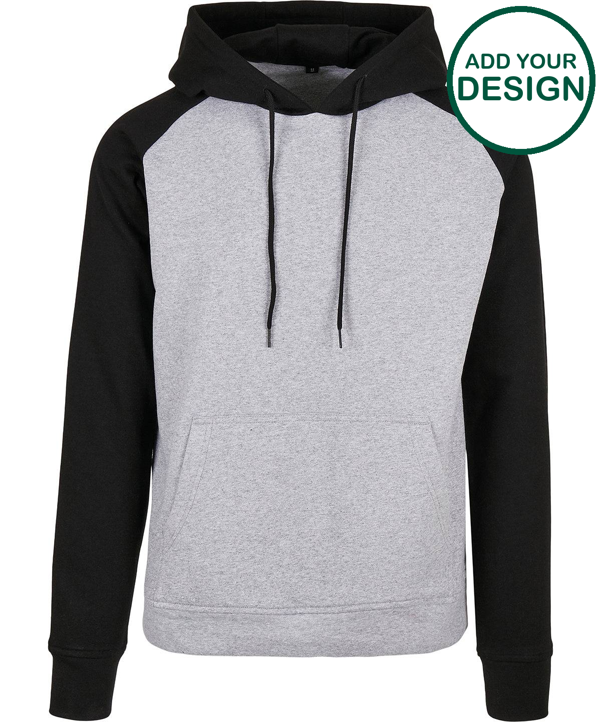 Créez votre marque Basic - Sweat à capuche raglan basique - Gris chiné/Noir - Ajoutez votre design/logo