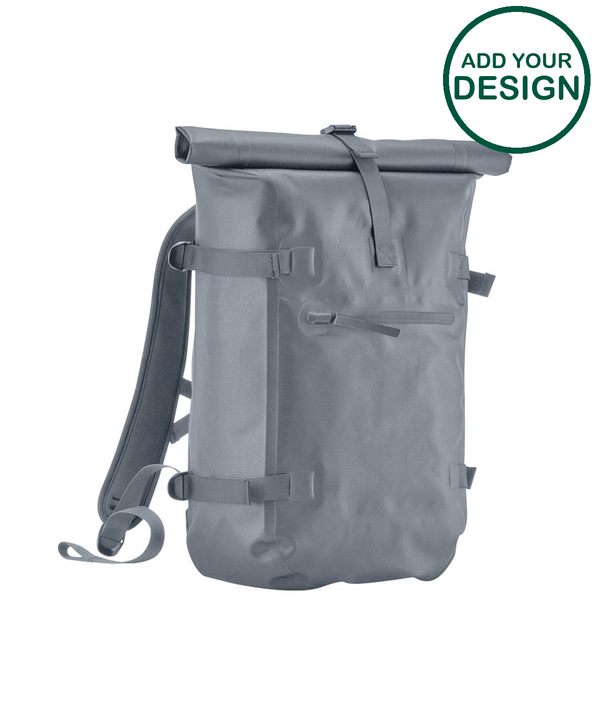 Quadra - Sac à enroulement imperméable - Bleu gris - Ajoutez votre design/logo