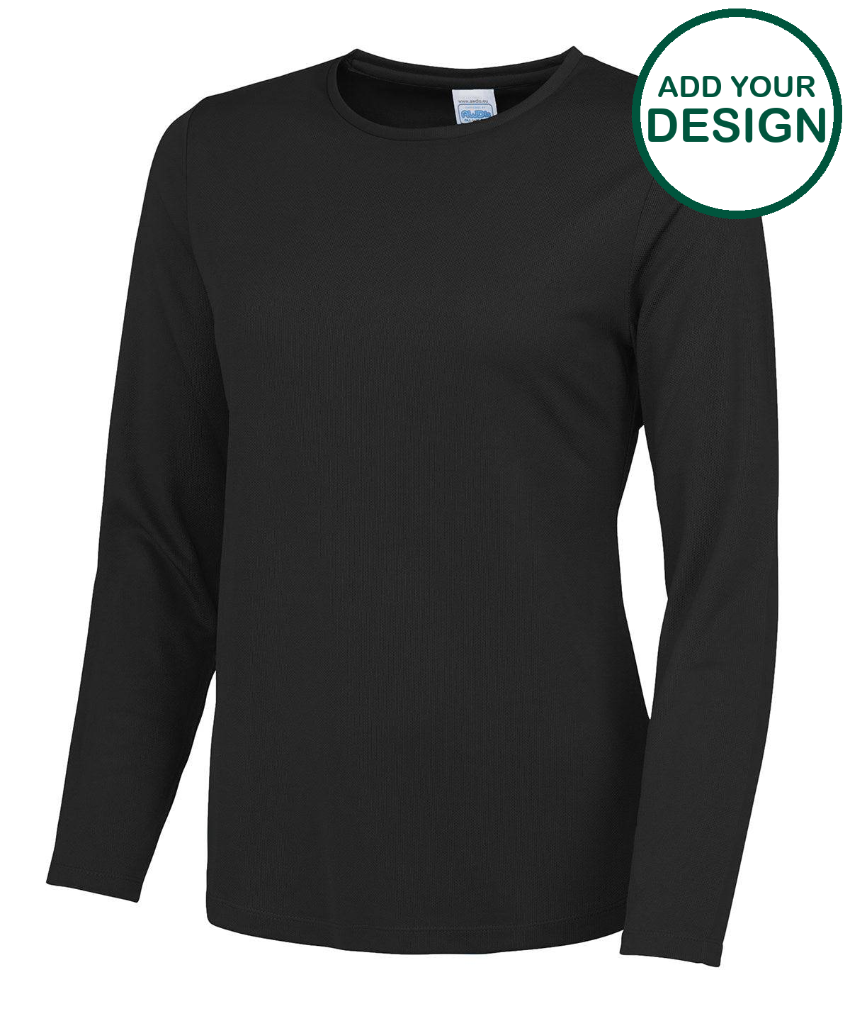 AWDis Just Cool - Women's long sleeve cool T - Jet Black - Add Your Design/Logo