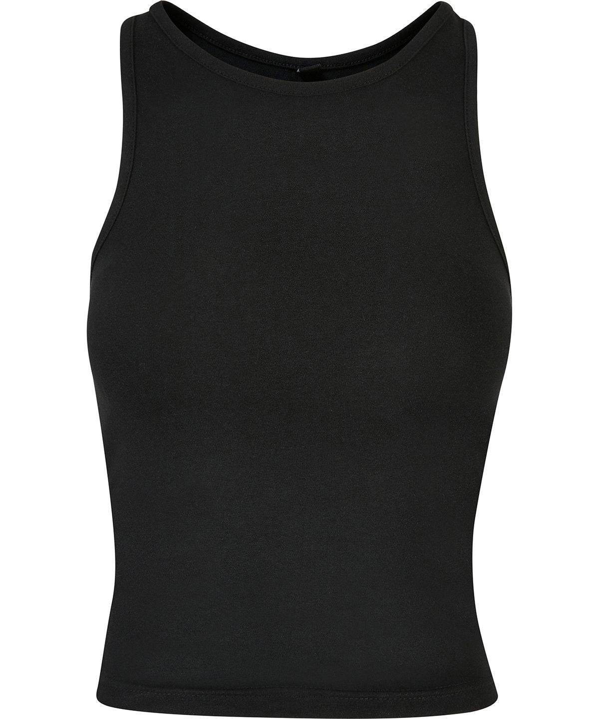 Equipped with a dynamic, sporty racerback cut, the otherwise plain, single-coloured women’s top sets a style statement. This women’s top offers a high crew neck on the front, while the cut is slim fit and the length is kept short. A pleasant wear is ensured by a material mix of cotton and elastane. The summery style can be individually refined further, either by flock or screen printing or with embroidery.