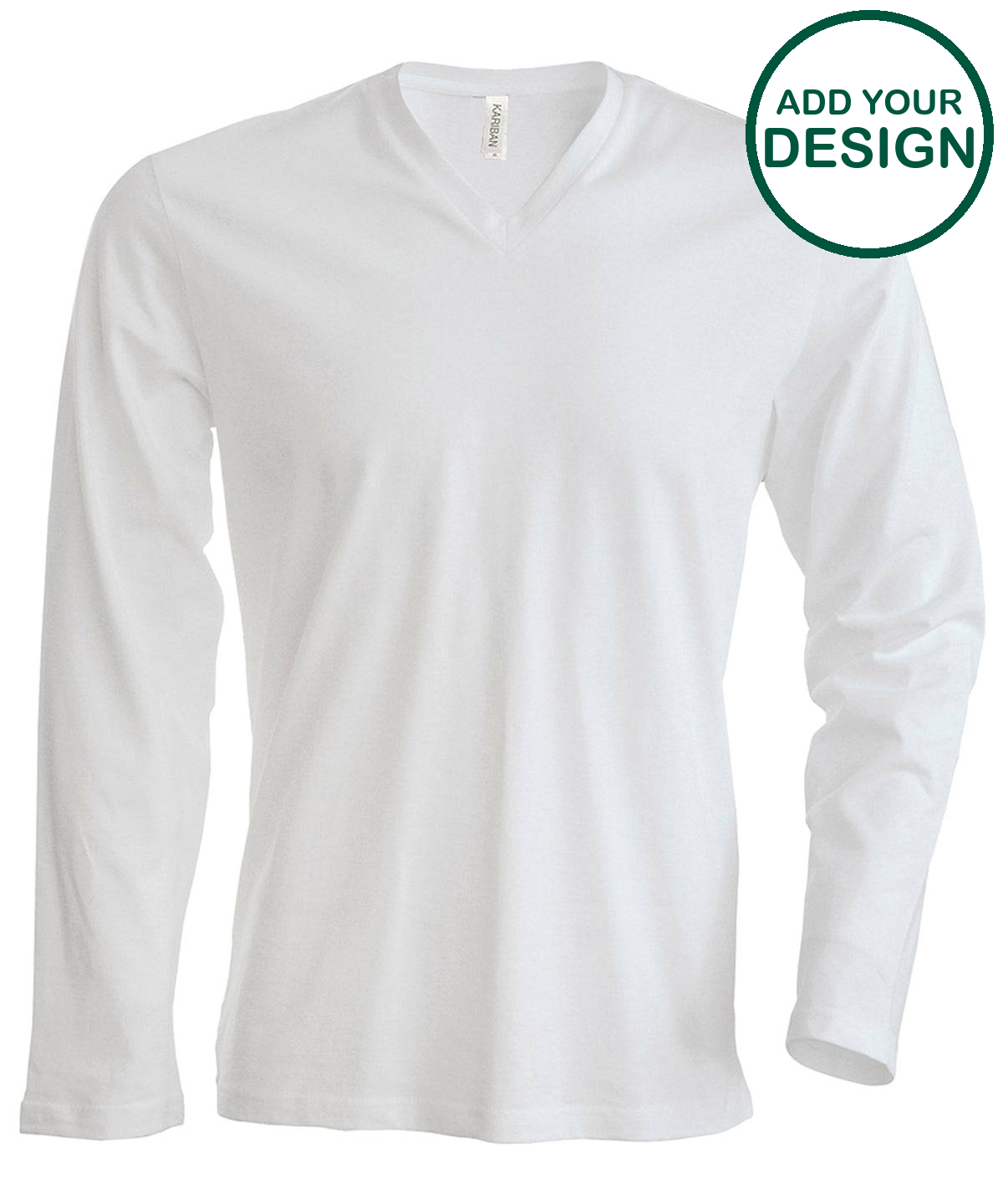 Kariban - Men's long-sleeved V-neck T-shirt - White - Add Your Design/Logo