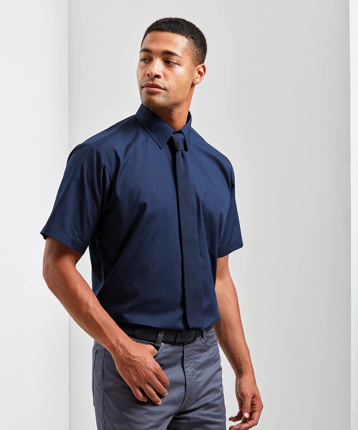 A short sleeved Poplin work shirt for men available in 30 colours from Premier's 'Colours Collection.' This classic fitting shirt has a stiffened formal cut collar that can accommodate a tie and the main body has a useful left breast pocket.