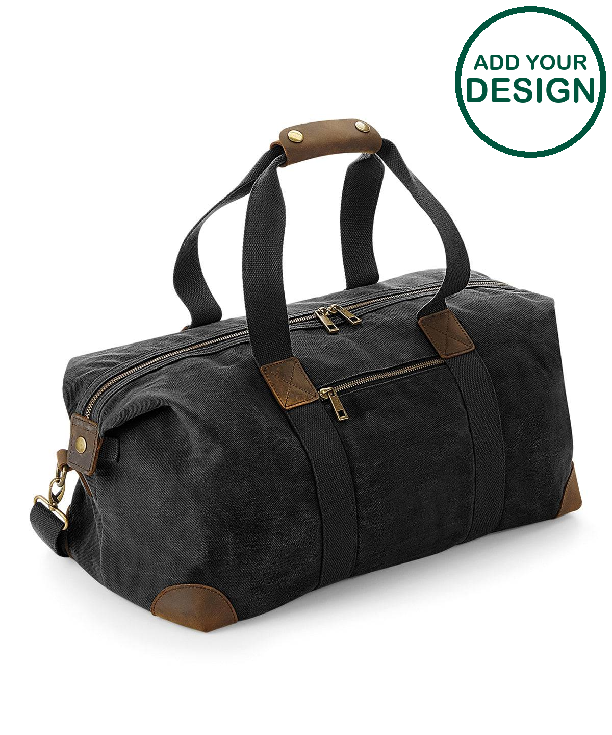Quadra - Heritage waxed canvas holdall - Black - Add Your Design/Logo